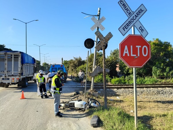 De acuerdo con la información recabada en el sitio, el accidente ocurrió la mañana de este miércoles, cuando el conductor de un taxi Chevrolet blanco con verde decidió efectuar una vuelta en "U" sobre el cruce de las vías, sin verificar que la circulación estuviera libre.