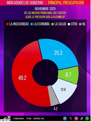 Los datos revelan que, aunque la inseguridad sigue dominando la conversación nacional, la economía comienza a disputarle el primer lugar en la preocupación ciudadana, marcando un cambio relevante en el pulso social hacia el cierre de 2025.