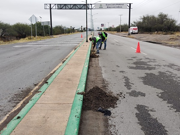 - Con acciones de mantenimiento se le da atención a una de las principales rutas de acceso, usada por el turismo nacional e internacional que visita San Luis Potosí.