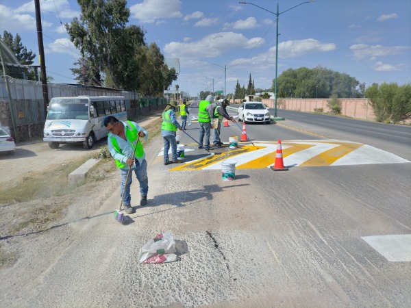 El Gobierno del Estado, a través de la Junta Estatal de Caminos (JEC), realiza trabajos de conservación en la ruta hacia el Aeropuerto Internacional de San Luis Potosí, con acciones de pintura en topes, colocación de bollas y limpieza de laterales, para garantizar traslados más seguros, eficientes y cómodos.