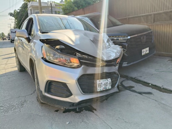 Al llegar al cruce con 16 de Septiembre, su conductora presuntamente no respetó la señal de alto, lo que provocó que impactara a una camioneta Chevrolet Trax gris que avanzaba con preferencia de paso.