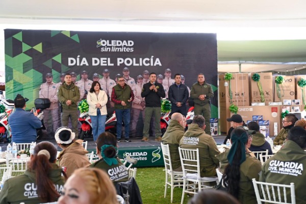 En un ambiente de alegría, orgullo y compañerismo, se celebró el Día del Policía, a las y los integrantes de la Guardia Civil Municipal, evento encabezado por el Alcalde de Soledad de Graciano Sánchez, Juan Manuel Navarro Muñiz, junto con el comisario de la corporación Víctor Aristaco Serna. Durante la celebración, se reconoció la labor diaria de las mujeres y hombres que con compromiso y vocación protegen a las y los soledenses y como parte del festejo, el edil anunció a los elementos un aumento de sueldo, ya contemplado en el presupuesto del próximo año, así como la promoción de grados, acciones que buscan fortalecer la motivación, dignificar su trabajo y reconocer el esfuerzo que realizan todos los días al servicio de la ciudadania.