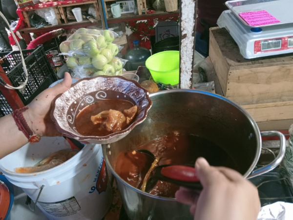La comerciante señaló que desde las 6:00 de la mañana ya se encuentran instalados ofreciendo menudo, zacahuil, ponche y antojitos, ideales para reponer energías tras las celebraciones. Destacó que el menudo, preparado con chile piquín y chile puya, es especialmente recomendado. "Entre más picoso, mejor para curar la resaca", afirmó.