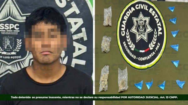 Durante la intervención, los elementos de la Guardia Civil Estatal aseguraron cuatro dosis de marihuana, asimismo nueve dosis de una sustancia con características del cristal.