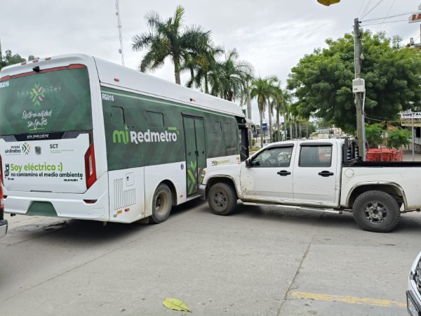 Según la información recabada en el lugar, el conductor de la camioneta intentó incorporarse al bulevar al salir por la calle Escontría, pero no respetó la preferencia de paso, lo que provocó que se impactara contra uno de los costados del autobús que circulaba por la vialidad principal.
