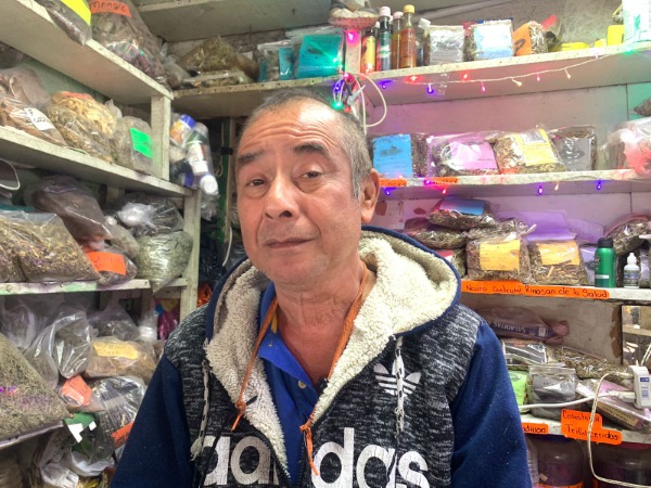 Detalló que el sahumerio que ofrece está elaborado con alrededor de 40 plantas, entre ellas ruda, romero, albahaca y otras hierbas tradicionales, utilizadas para la limpieza energética del hogar.