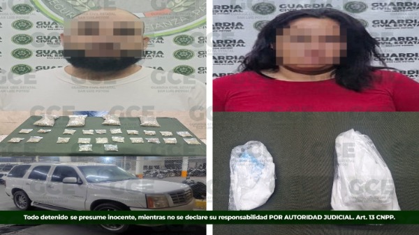 En la capital potosina, la GCE detuvo a Fernando "N" de 29 años y a Ricardo "N" de 26 años, luego de asegurarles 21 bolsas con marihuana, detectados como principales distribuidores de sustancias nocivas en el sector sur de la zona metropolitana. Ambos cuentan con antecedentes criminales por presuntos delitos contra la salud.