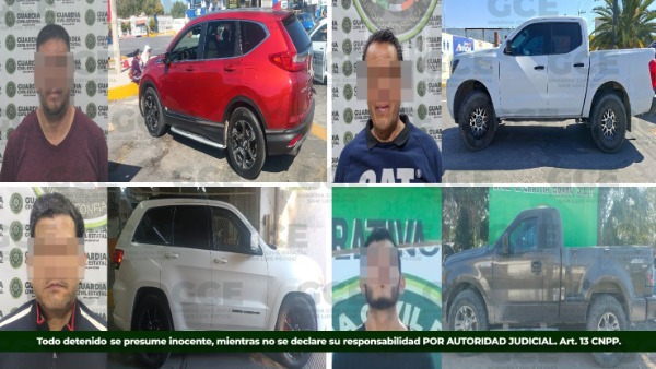 Las personas detenidas quedaron a disposición de la Fiscalía General del Estado, con los vehículos recuperados.