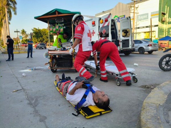 En la motocicleta viajaban José Ortiz Jiménez (vendedor de trolelotes) y su esposa Ignacia López, vecinos del fraccionamiento Lomas del Real, quienes cayeron al pavimento tras el impacto y resultaron con diversas lesiones.