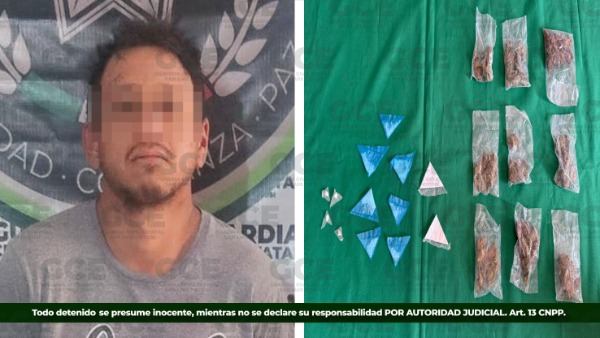 Durante la intervención, los elementos estatales aseguraron siete dosis de la droga conocida como "cristal", nueve dosis de marihuana, cuatro dosis de "crack" y dos dosis de cocaína.