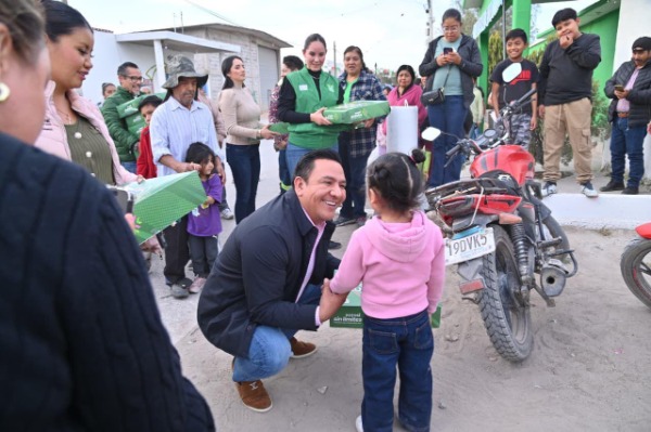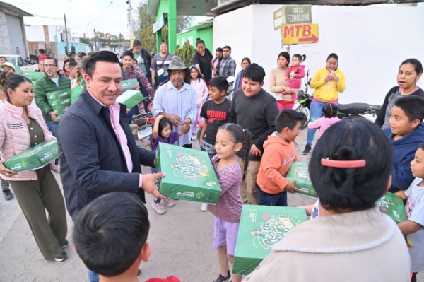 En representación del Gobernador Ricardo Gallardo Cardona, el secretario general de Gobierno, J. Guadalupe Torres Sánchez, encabezó la entrega de roscas de Reyes en el municipio de Mexquitic de Carmona y recorrió las calles principales para llevarlas directamente a los hogares potosinos.