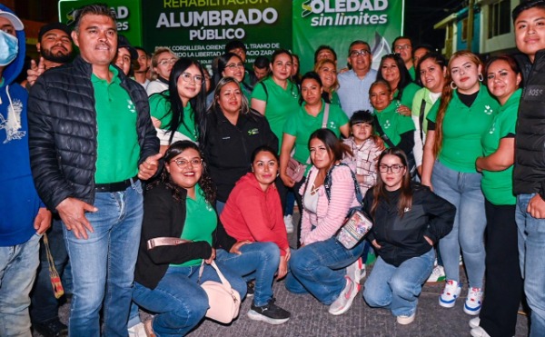 Juan Manuel Navarro Muñiz, Alcalde de Soledad de Graciano Sánchez, entregó a miles de familias de la zona oriente del municipio, el encendido de la renovación del alumbrado público de la avenida Cordillera Oriental, obra que representó una inversión de 6.6 millones de pesos y la instalación de 220 luminarias LED, con lo que se fortalece la seguridad y movilidad de una de las vialidades más importantes del municipio, en beneficio de más de 24 mil personas.
