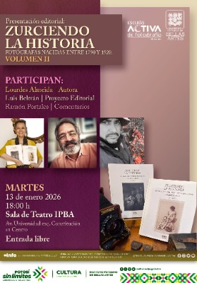 La Secretaría de Cultura de Gobierno del Estado invita a la presentación editorial de "Zurciendo la historia, Fotógrafas nacidas entre 1790 y 1920. Volumen II", de Lourdes Almeida, con la participación de la autora, de Luis Beltrán, quien estuvo encargado del proyecto editorial y de Ramón Portales en los comentarios, y que se llevará a cabo el 13 de enero a las 18:00 h en Sala de Teatro del Instituto Potosino de Bellas Artes invita. Entrada libre.