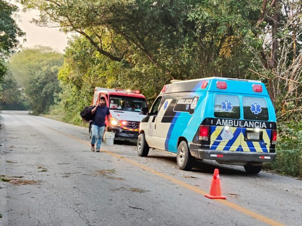 El percance ocurrió en el kilómetro 22, en el tramo comprendido entre las comunidades de Los Otates y Santa Anita, donde la pesada unidad perdió estabilidad al tomar una curva y terminó fuera de la vía, entre la maleza.