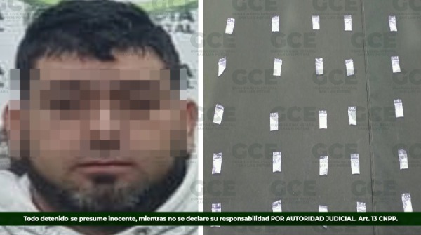De acuerdo con la información recabada, el detenido se identifica como integrante de un grupo criminal, por lo que se procedió a su aseguramiento, así como al decomiso de la 25 dosis de "cristal".