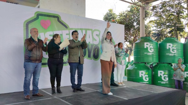 La senadora Ruth González Silva encabezó este jueves la entrega de cisternas y láminas galvanizadas a familias de Ciudad Fernández, como parte de acciones para mejorar las condiciones de vivienda en el municipio.