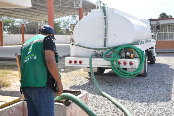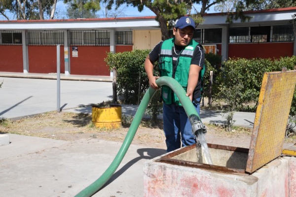 Estas labores se realizan por instrucción y gestión del Alcalde Juan Manuel Navarro Muñiz, quien ordenó la contratación de pipas para asegurar el abasto emergente en los centros escolares, con sensibilidad ante la situación que enfrentan estudiantes, docentes y personal educativo; con ello, la Administración Municipal refrenda su línea de acción de escuchar y atender, manteniéndose cerca de la comunidad educativa.