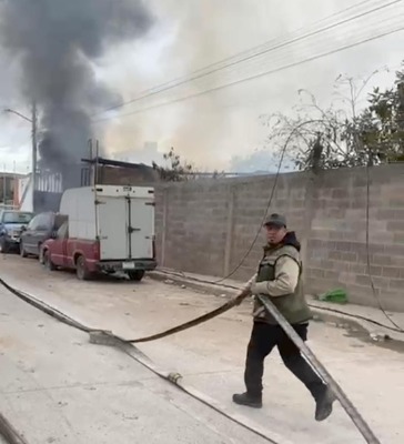 Tras el reporte por el registro de un incendio en la colonia Genovevo Rivas Guillén 2do plano, personal de Protección Civil Municipal de Soledad de Graciano Sánchez, acudió de inmediato y coordinó esfuerzos para sofocar las llamas, provenientes de un taller de carpinteria.