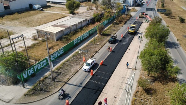 Vargas Tinajero explicó que los trabajos ya presentan avances sustanciales en ambos sentidos de la vialidad, tanto en el tramo correspondiente a Villa de Pozos como en el lado de la capital potosina, donde ya fue colocada la carpeta asfáltica en las laterales.