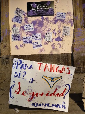 La movilización fue convocada por la colectiva URZO y evidenció el hartazgo de la comunidad estudiantil ante la respuesta tardía y limitada de las autoridades universitarias. Durante el recorrido, las manifestantes realizaron una parada frente a la Defensoría de los Derechos Universitarios, ubicada en el Pasaje Zaragoza, instancia que calificaron como un "adorno institucional" por su falta de acciones contundentes ante casos de violencia de género. Ahí corearon consignas y expresaron su solidaridad con la víctima, quien —denunciaron— fue atacada con extrema violencia.
