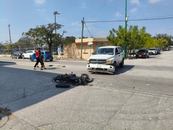 Un accidente vial registrado la tarde de este viernes dejó como saldo un joven motociclista lesionado, en hechos ocurridos en la intersección de la avenida Vicente C. Salazar y la calle Aztecas, a espaldas del centro comercial Chedraui.