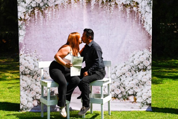 Ana Karla y Edgar Iván, vecinos de la colonia San Felipe, también encontraron en esta celebración la oportunidad de consolidar su proyecto de vida; su historia comenzó hace un año, en un centro de rehabilitación en San Luis Potosí, donde coincidieron por experiencias similares que los acercaron y los llevaron a acompañarse en un proceso de crecimiento personal, tras meses de pláticas sencillas, apoyo mutuo y ocho meses viviendo juntos, decidieron que el matrimonio era el siguiente paso para avanzar con seguridad. "Nos dimos cuenta de estas bodas por internet y dijimos: hay que hacerlo de una vez; el trámite fue sencillo y la celebración muy bonita", expresaron, destacando la orientación y el acompañamiento recibidos.