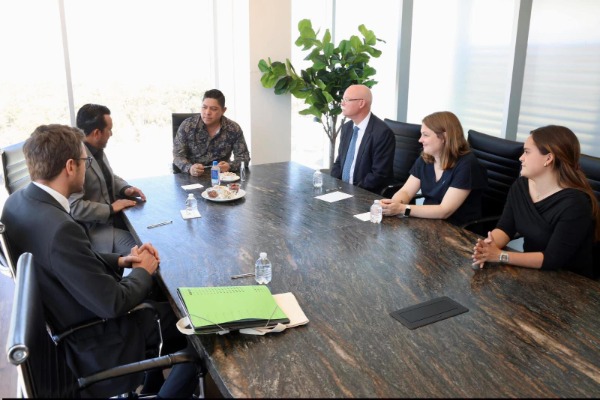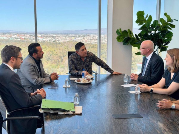Durante la reunión de trabajo, presentó las ventajas competitivas de San Luis Potosí como un destino atractivo para la inversión extranjera, destacando su ubicación estratégica, la disponibilidad de mano de obra calificada y la conectividad que brindan las nuevas carreteras que enlazan a la entidad con la frontera norte, estados vecinos y los principales puertos del país.