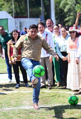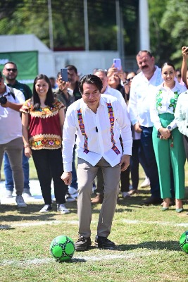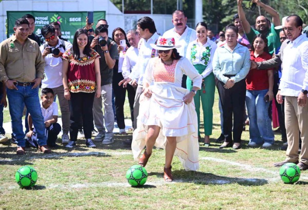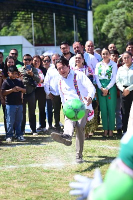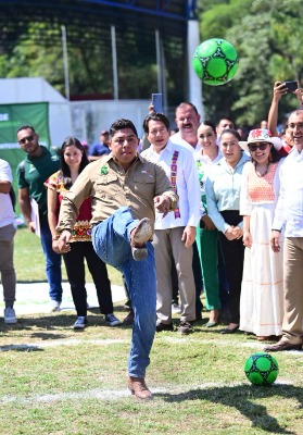 Junto a Mario Delgado, titular de la SEP, inauguró la jornada de lectura "Voces vivas de nuestros Pueblos Originarios", y dieron la patada inicial del "Mundialito Escolar" zona Huasteca.
