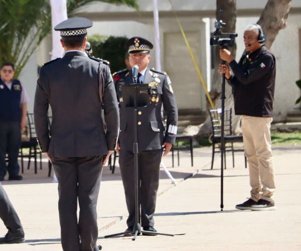 Durante la toma de protesta, además de rendir honores a la bandera, los mandos medios de la Guardia Nacional se presentaron con el nuevo general.