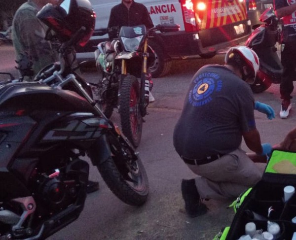 La tarde del martes se registró un accidente entre dos motocicletas en el cruce de las calles Allende y Galeana, en la zona centro de Ciudad Fernández.