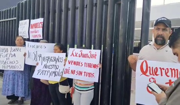 Un grupo de ciudadanos se manifestó pacíficamente frente a la Tercera Delegación de la Fiscalía General del Estado en Rioverde, para denunciar la lentitud en la procuración e impartición de justicia en un caso de fraude relacionado con la venta de terrenos.