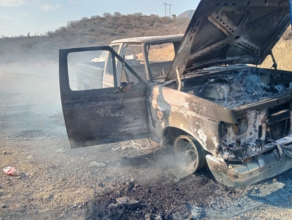 Se trata de una Ford F-150 cabina y media, modelo atrasado, de la cual se desconoce el color original, ya que terminó completamente quemada. Tampoco fueron localizados los ocupantes, por lo que la unidad aparentemente estaba en abandono.