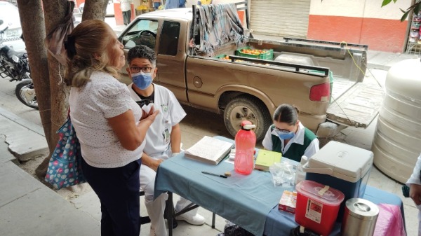 El día de ayer lunes, una brigada de enfermeros de este nosocomio realizó una jornada de vacunación al exterior de una tienda de autoservicio, sobre la avenida "Benito Juárez" esquina con "Blas Escontria", en la zona centro; labor que realizarán posteriormente en puntos estratégicos.
