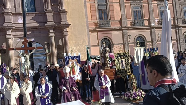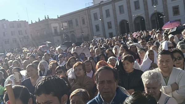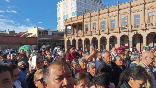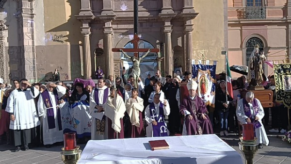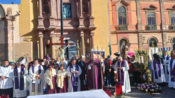 Decenas de personas acudieron al lugar para participar en la ceremonia religiosa realizada en el Centro Histórico de San Luis Potosí.