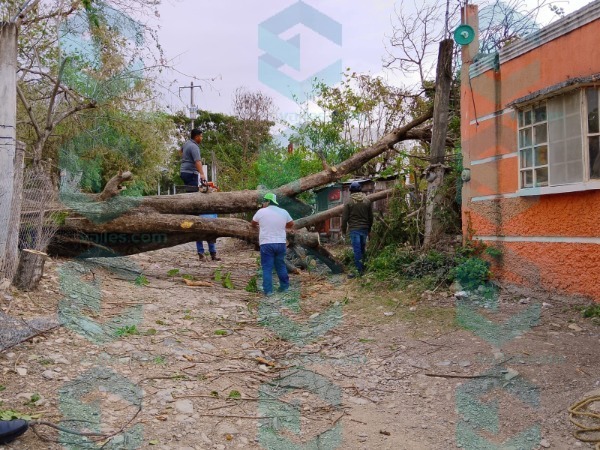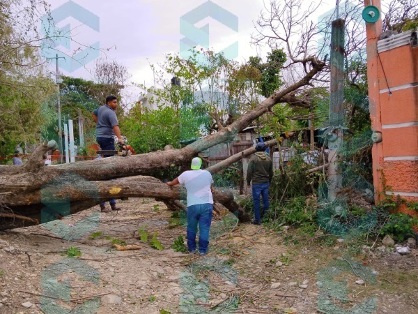 Elementos de Protección Civil acudieron de inmediato al lugar para realizar las maniobras necesarias y retirar el árbol, que quedó atravesado sobre la calle y los domicilios.