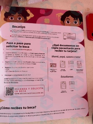 Los padres que no puedan acudir al kiosco de la plaza tienen la opción de acudir a las oficinas de la Coordinación Nacional de Becas de Bienestar en la calle Hidalgo número 106, donde también se ofrece apoyo para completar el registro.