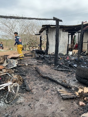 El siniestro afectó principalmente un espacio construido con materiales rústicos, utilizado como cocina, el cual fue consumido junto con los utensilios que se encontraban en su interior.