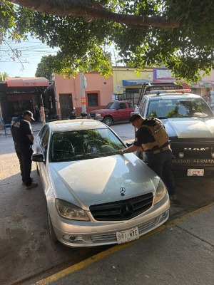 Dentro de las labores preventivas, los oficiales observaron un vehículo Mercedes Benz en aparente estado de abandono y mal estacionado en la plaza principal, por lo cual se dispusieron a checarlo en la base de datos nacional.