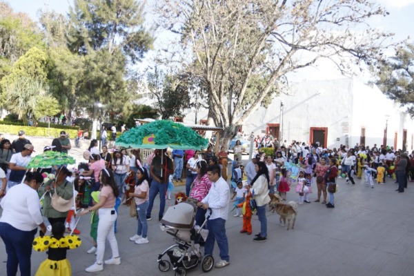 Fue la tarde del jueves que realizaron un desfile en carros alegóricos por diversas calles de la ciudad, donde portaban diversos trajes de animales y flora, para representar con ello la llegada de esta estación del año.
