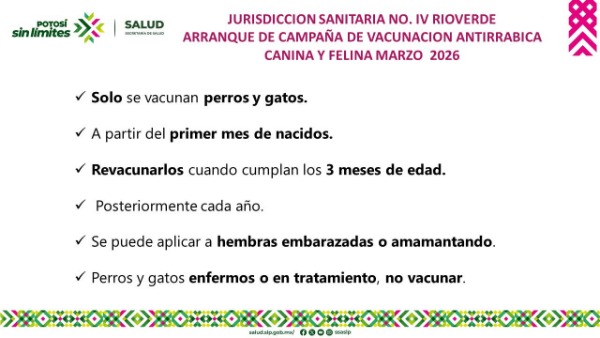 De acuerdo con lo informado por autoridades de salud, el arranque de la jornada comenzó en los municipios de Ciudad Fernández y Rioverde, donde desde este día se instalaron módulos de atención para que la población lleve a sus mascotas a recibir la dosis correspondiente.