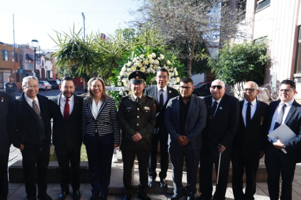 Encabezado por la diputada Sara Rocha Medina, presidenta de la Directiva del Congreso del Estado; los diputados Héctor Serrano Cortés, Cuahutli Badillo Moreno, y Emilio Rosas Montiel; el Secretario de Educación de Gobierno del Estado, Juan Carlos Torres Cedillo; el Gran Maestro de La Gran Logia Soberana e Independiente "El Potosí", Horacio Sánchez; Brígido Puente Martínez, Secretario de Vinculación de la Confederación de Grandes Logias Regulares de los Estados Unidos Mexicanos