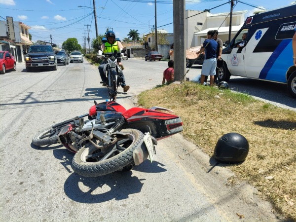 En ese momento circulaba con preferencia una motocicleta Italika rojo con negro, cuyo conductor no logró evitar el impacto, provocando que ambos vehículos colisionaran y sus ocupantes salieran proyectados al pavimento.