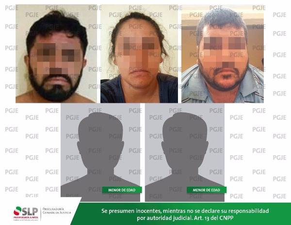 Los detenidos responden a los nombres de Alfredo de 28 años; José de 29 años; Dulce de 19 años; así como dos menores de edad de 15 y 17 años de edad, respectivamente, los cuales quedaron a disposición de la autoridad competente bajo los probables cargos de privación ilegal de la libertad, portación de arma de fuego y lo que les resulte.