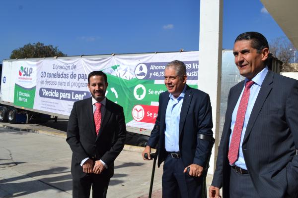 Por último y previo al banderazo de salida del tráiler que trasladará las 20 toneladas de papel a la ciudad de México, Michel Eduardo Moya Sánchez Coordinador del Programa "Recicla para Leer" y el Oficial Mayor del Ejecutivo firmaron el Acta de entrega de papel por parte del Gobierno del Estado de San Luis Potosí.