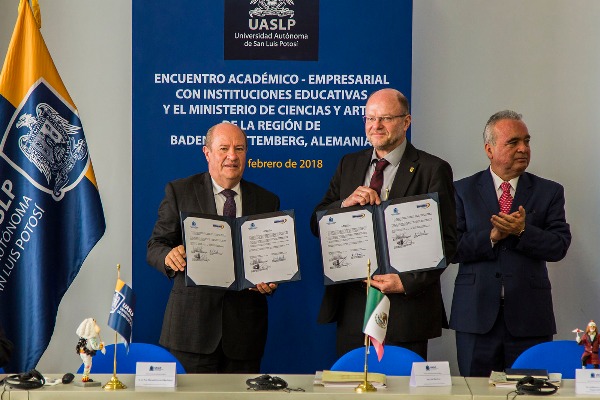 La Universidad Autónoma de San Luis Potosí sostuvo una reunión de trabajo con rectores de universidades de la región Baden-Württemberg, Alemania, y la ministra de Ciencia y Tecnología, con la finalidad de mostrar sus fortalezas, estudios, áreas de investigación, vinculación y docencia, y las que puedan ser de interés para los visitantes.