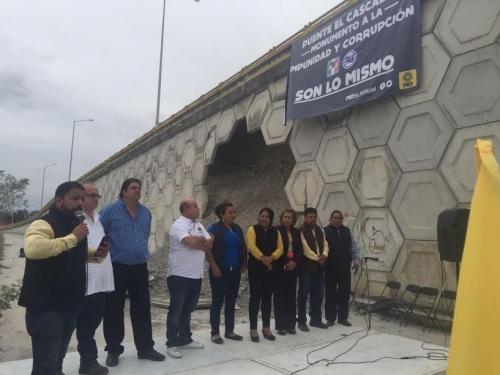 “En una gira por la huasteca nos encontramos con una serie de reclamos de la gente, nos pedían que protestáramos, que alzáramos la voz con distintos temas, no solamente con el puente El Cascabel, que por cierto seguimos señalando que es un monumento a la corrupción y al cinismo, no es posible que una obra que haya sido ejecutada hace apenas 10 años, que salió un concurso en aquel entonces en 2006, por un valor de 40 millones de pesos, eso fue lo que concursó un constructor que ganó, pero terminó costando 70 millones, casi el doble de lo que se firmó el contrato y sin que hubiera un asunto geológico o natural, o una guerra, se le abre un boquete inmenso”.