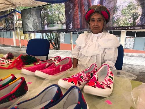 Señala que los precios de sus productos son accesibles, al alcance de toda la gente, porque los costos van desde 250 o 350 pesos en blusas y el quexquémelt de 600, 450 o 150, y de zapatos igualmente; todo depende del bordado que elaboren, ya sea sencillo o con detalles.