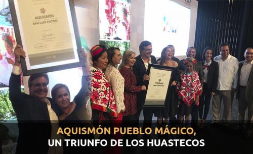 El jueves 11 de octubre de 2018 quedará marcado en la historia regional, porque ese día fue otorgado el nombramiento de Pueblo Mágico a Aquismón, convirtiéndose en el tercer municipio de San Luis Potosí en alcanzar esa distinción, que lo hará merecedor de presupuestos especiales para obras de infraestructura.