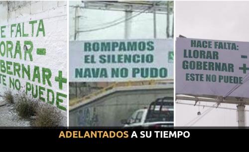 El sábado, en varios puntos de la capital aparecieron los mensajes: “ROMPAMOS EL SILENCIO NAVA NO PUDO”. Otro mensaje es: “HACE FALTA LLORAR – GOBERNAR + ESTE NO PUEDE”; ambos acompañados del logo del Partido Verde.