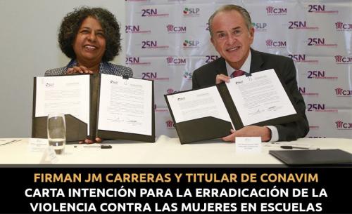 Firman JM Carreras y titular de Conavim carta intención para la erradicación de la violencia contra las mujeres en escuelas